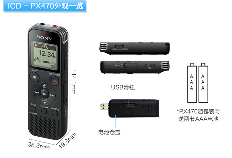 索尼(SONY)錄音筆ICD-PX470 4GB支持PCM線性錄音 便攜式學(xué)習(xí)商務(wù)采訪 專業(yè)大直徑揚(yáng)聲器