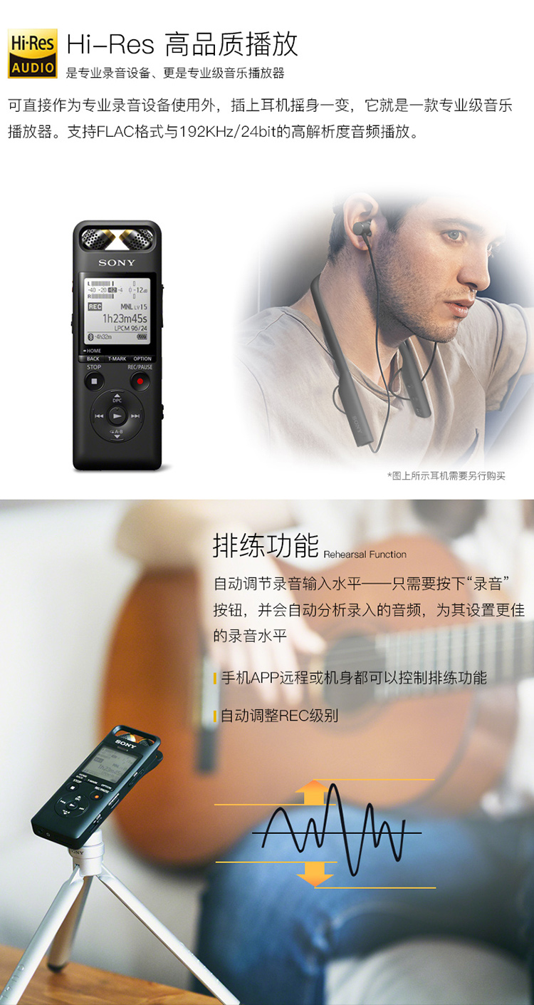 • 商品名稱:索尼(SONY)數(shù)碼錄音棒/錄音筆PCM-A10 16GB 高清專業(yè)降噪 藍(lán)牙操控 無損音樂播放 樂器學(xué)習(xí)商務(wù)采訪