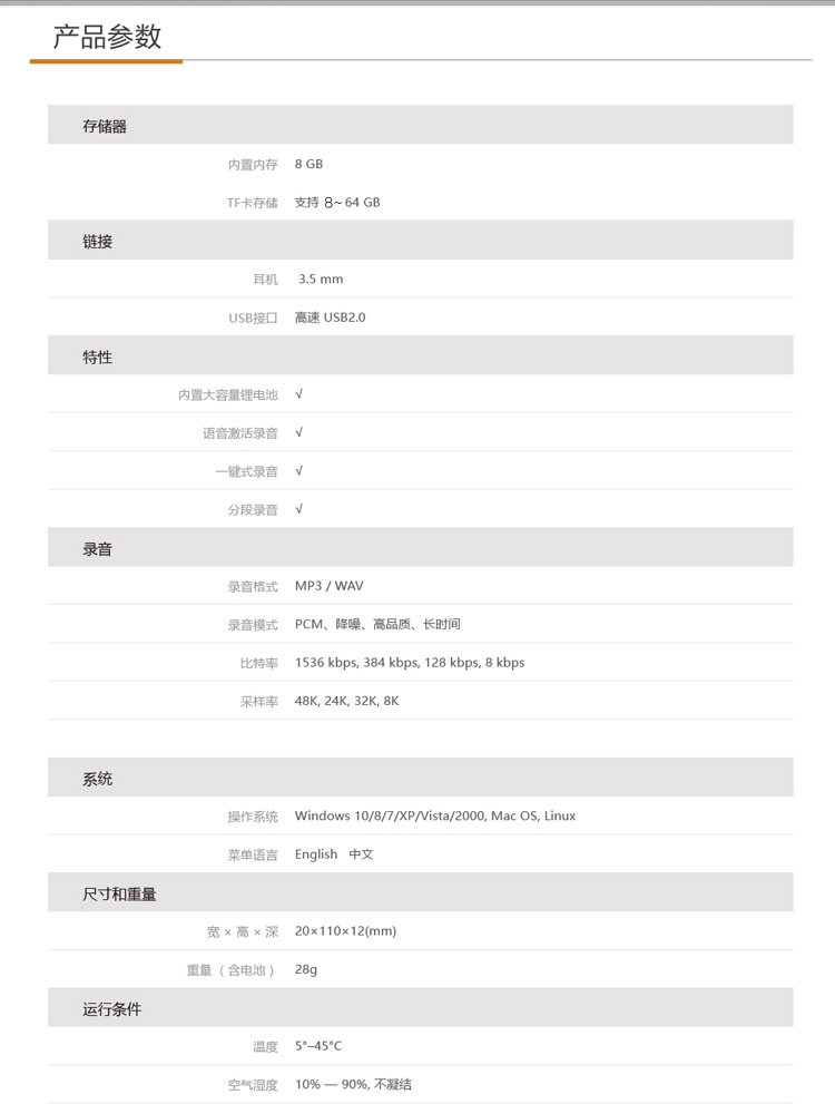 • 商品名稱:飛利浦(PHILIPS)VTR5200 8GB 會議采訪 雙麥克風數(shù)碼錄音筆