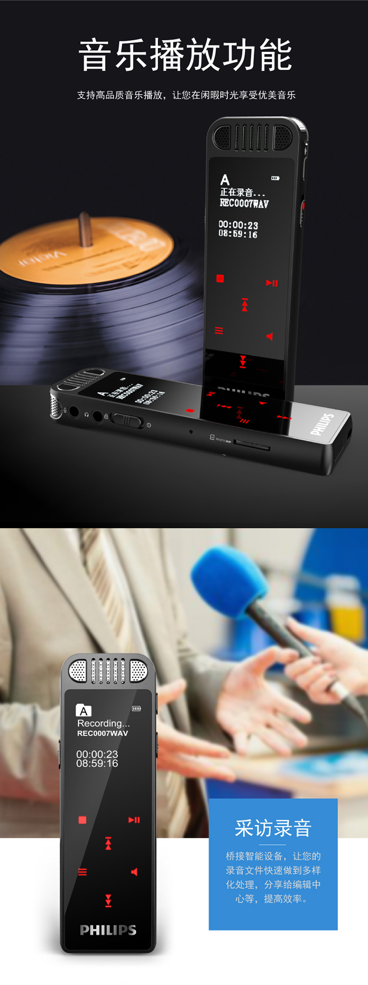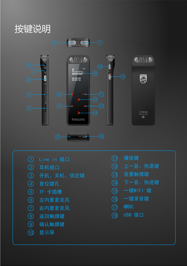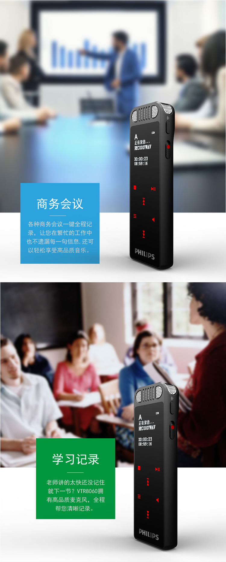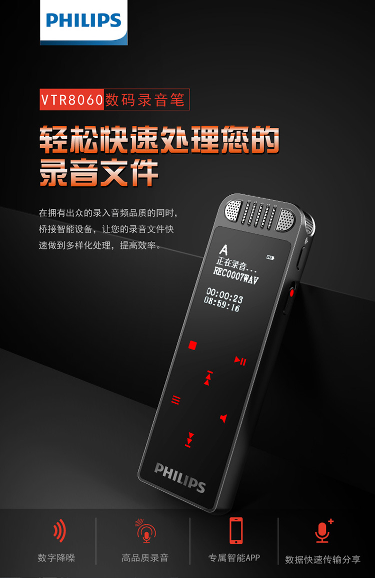 • 商品名稱:飛利浦(PHILIPS)VTR8060 16GB 會(huì)議 學(xué)習(xí)記錄 WIFI 語音轉(zhuǎn)文本 APP文件傳輸分享 智能數(shù)字降噪錄音筆