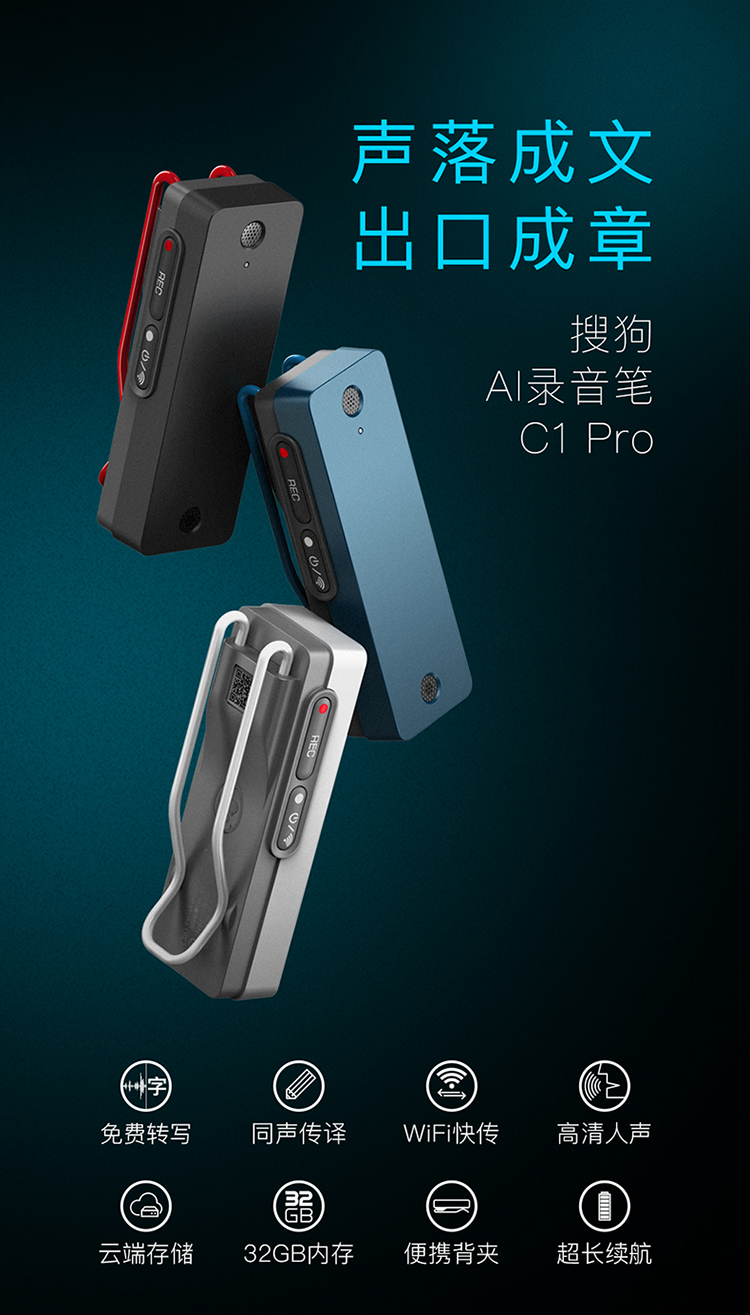 搜狗 Sogou AI智能錄音筆C1 Pro 終身免費轉(zhuǎn)文字 高清錄音 32G 同聲傳譯 WIFI快傳 超長續(xù)航
