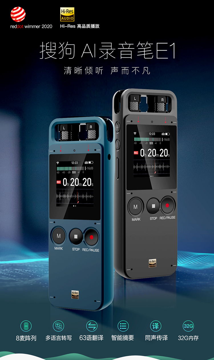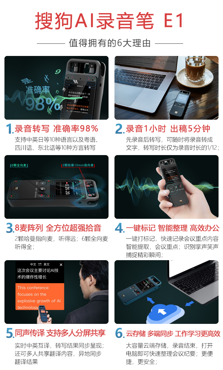 • 商品名稱:搜狗Sogou AI智能錄音筆E1 終身免費(fèi)轉(zhuǎn)文字 中英文同聲傳譯 8麥?zhǔn)耙?多語言翻譯