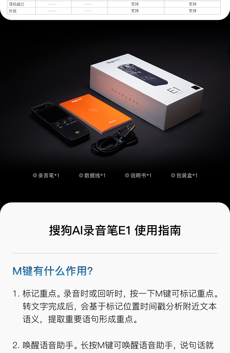 搜狗Sogou AI智能錄音筆E1 終身免費(fèi)轉(zhuǎn)文字 中英文同聲傳譯 8麥?zhǔn)耙?多語言翻譯