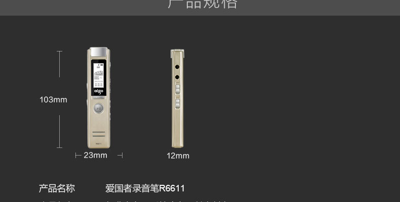 • 商品名稱:愛國者(aigo) 錄音筆 R6611 16G 微型 專業(yè) 高清遠(yuǎn)距降噪 MP3播放器 學(xué)習(xí)會議采訪
