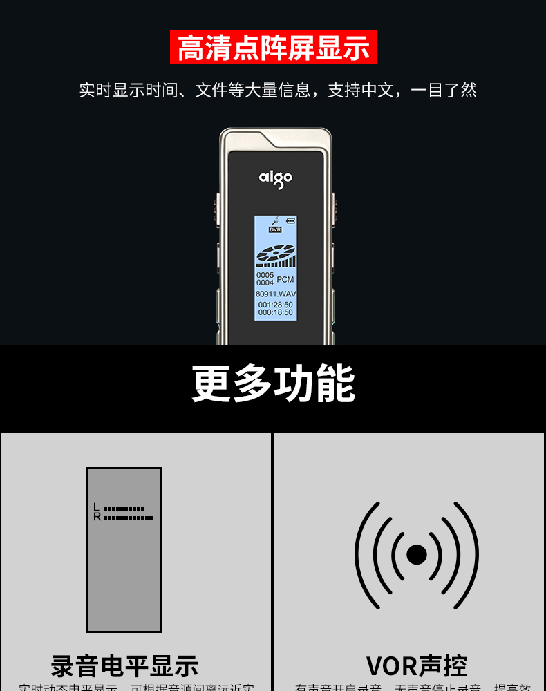 愛國者(aigo) 錄音筆 R6811 16G一鍵錄音擴(kuò)容智能專業(yè)微型高清降噪錄音器 學(xué)習(xí)會(huì)議培訓(xùn)采訪