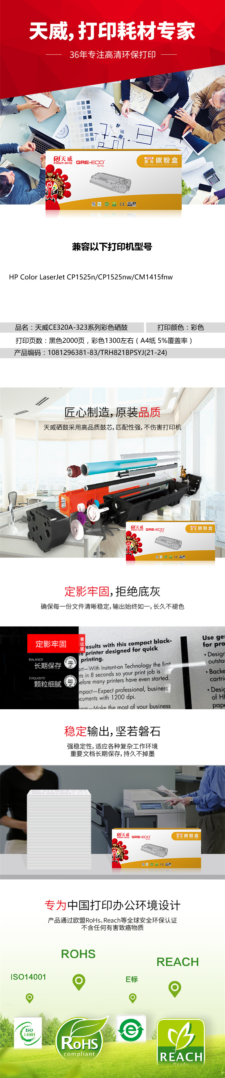 • 商品名稱:天威 CE320A 硒鼓帶芯片商用裝(TRH821BPSYJ) 2000頁 黑色 適用于HP Color LaserJet CP1525n/CP1525nw/CM1415fnw