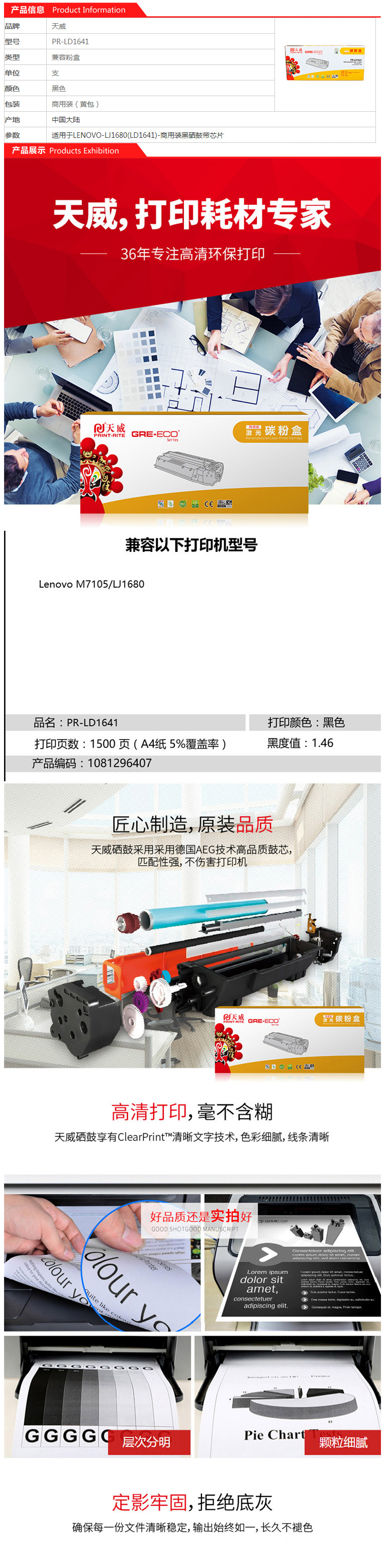 • 商品名稱:天威 LD1641 硒鼓帶芯片商用裝(TFL108BPSYJ) 1500頁(yè) 黑色 適用于Lenovo M7105/LJ1680
