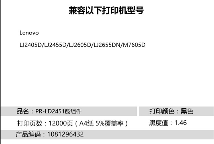 • 商品名稱:天威 LD2451 鼓組件商用裝(TFL131BPSYJ) 12000頁(yè) 黑色 適用于Lenovo LJ2405C/LJ2455C/LJ2605C/LJ2655DN/M7605D