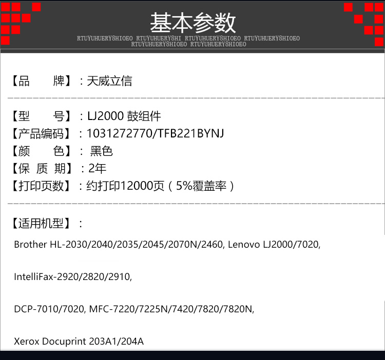 • 商品名稱:天威立信 LJ2000(TFB221BYNJ) 黑色鼓組件 印量約12000頁