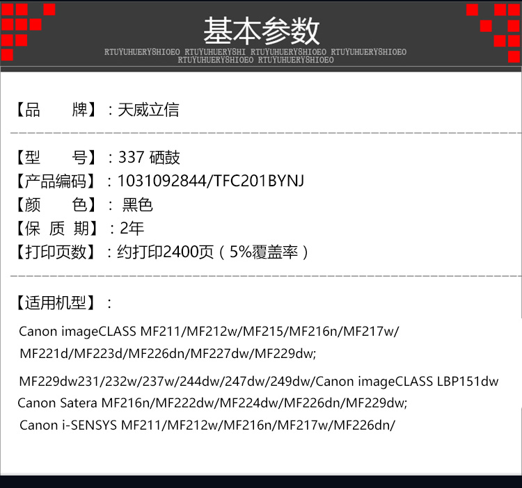 • 商品名稱:天威立信 337 黑色硒鼓帶芯片 印量約2400頁(yè)