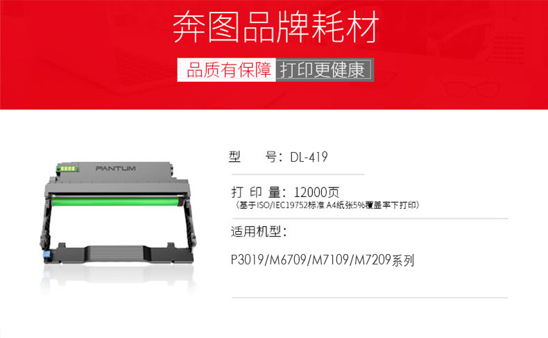 • 商品名稱:奔圖(PANTUM)DL-419鼓組件 印量約12000頁