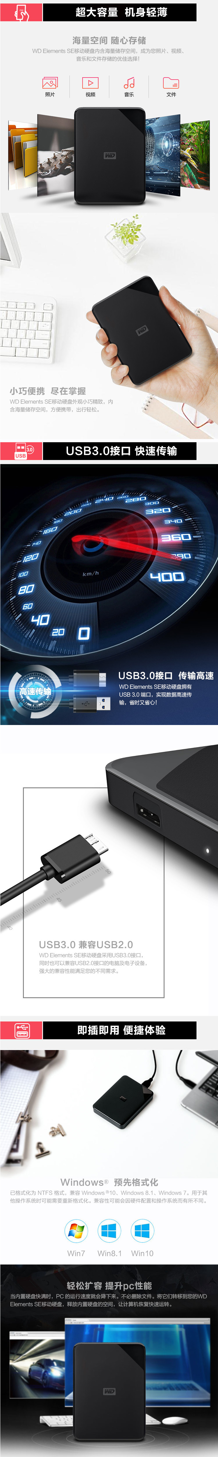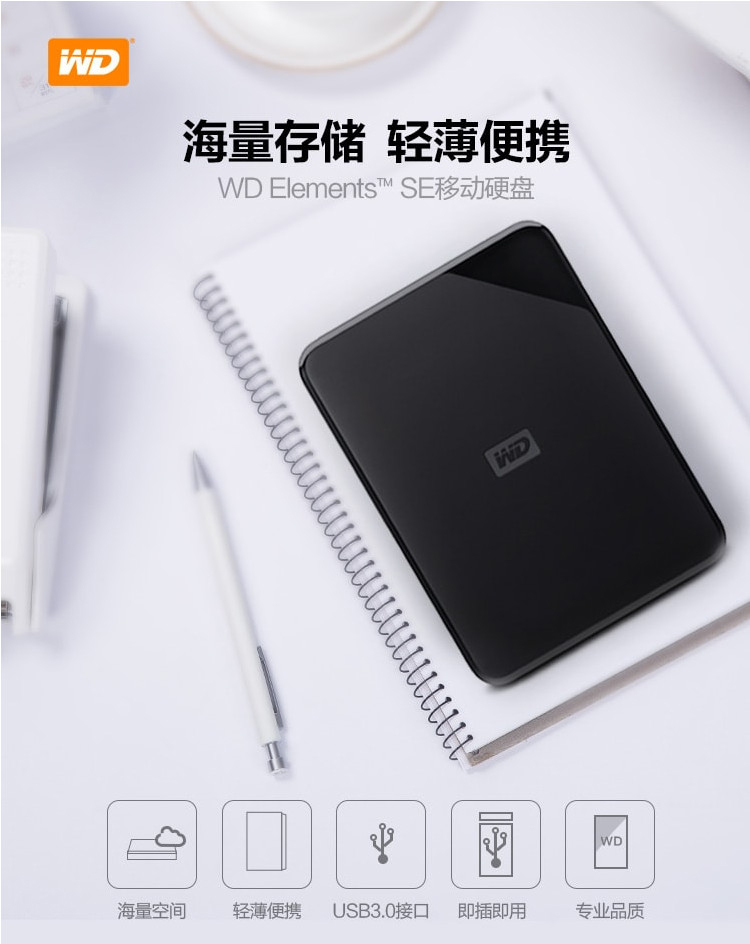 西部數(shù)據(jù)(WD) 2TB USB3.0 移動硬盤 Elements SE 新元素系列