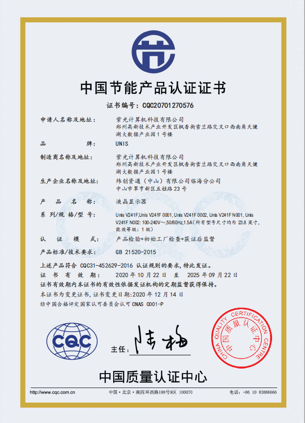 • 節(jié)能產(chǎn)品證書編號:CQC20701270576