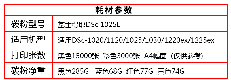 - 商品名稱:基士得耶 Dsc1025L型 紅色墨粉盒 適用DSc1120/DSc1220ex/DSc1225ex/GS3020c/GS3025c(3,000張印量)