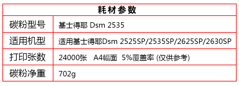 • 商品名稱:基士得耶 DSm2535型 碳粉 適用DSm2625sp/2630sp/2635sp(24,000張印量)