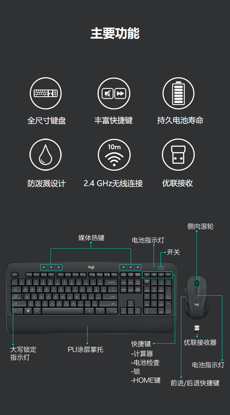 • 商品名稱:羅技(Logitech)無線鍵鼠套裝(黑色) MK545