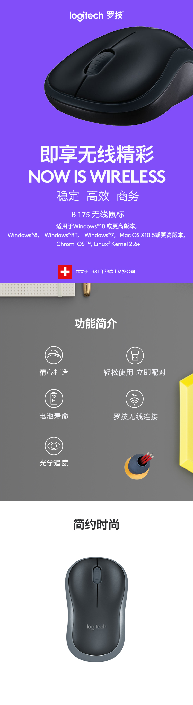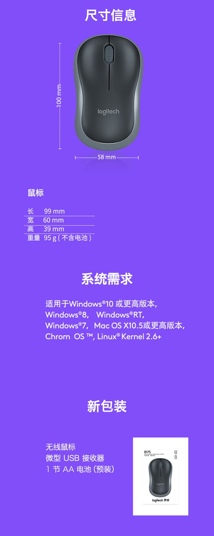 • 商品名稱:羅技(Logitech)無線鼠標(黑色) B175