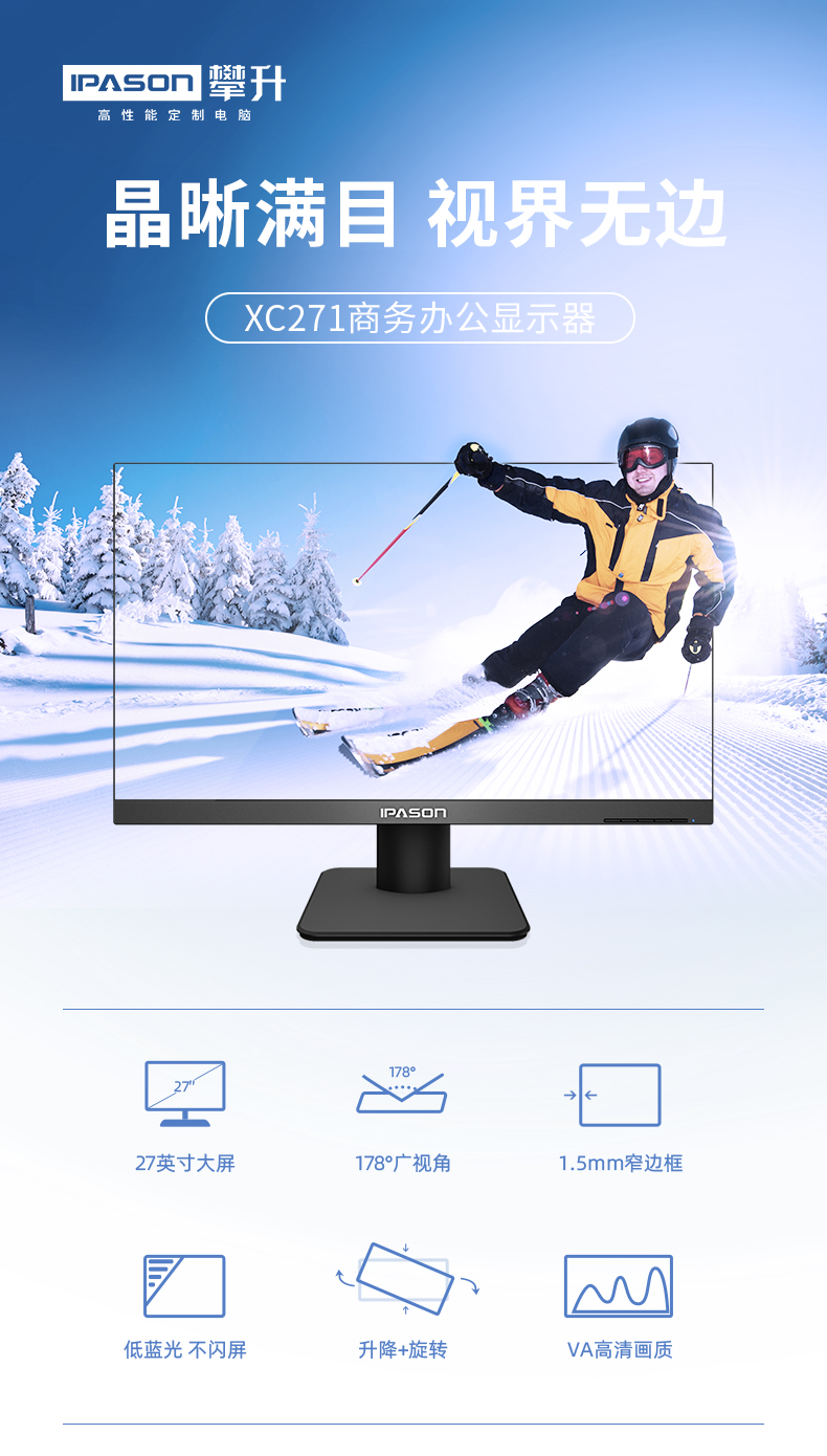 攀升/IPASON XC271 27英寸顯示器+可升降、旋轉(zhuǎn)+178度可視角度+HDMI*1 VGA*1 Audio*1+標配HDMI高清數(shù)據(jù)線+3年服務