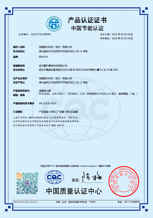 - 節(jié)能產(chǎn)品證書編號:CQC21701290599