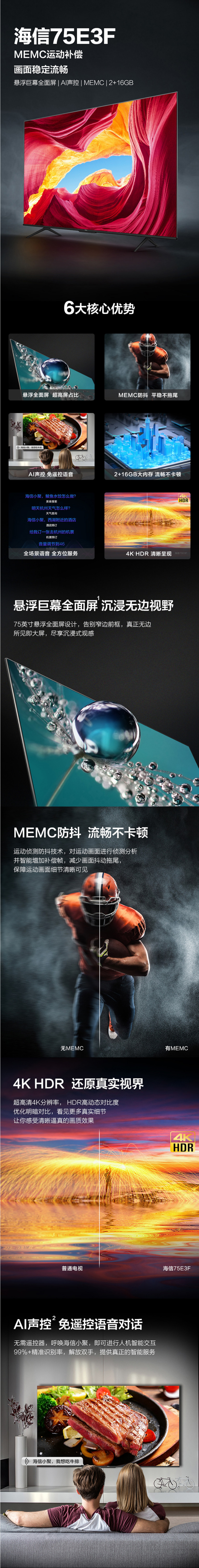 • 商品名稱:海信(Hisense)75E3F 75英寸 4K超高清 智慧語音 超薄電視機