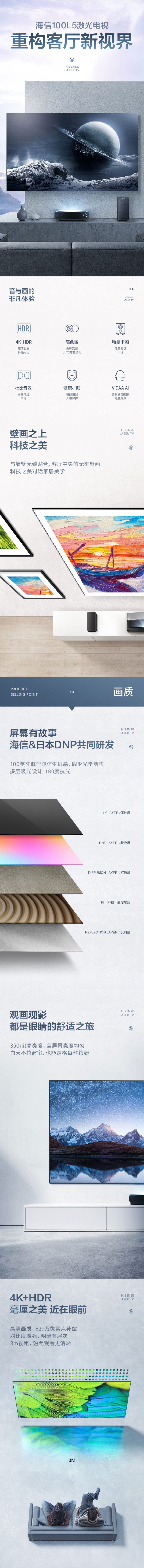• 商品名稱:海信(Hisense)100L5 100英寸 超高色域 菲涅爾全面屏 哈曼卡頓音響 MEMC 3+64G AI護(hù)眼激光電視