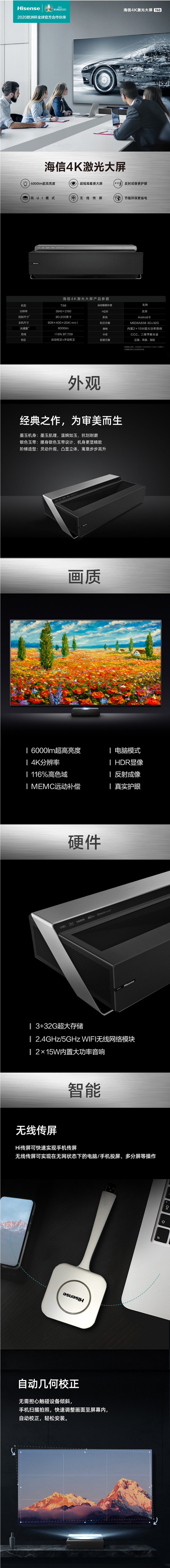 - 商品名稱:海信(Hisense)120T68 120英寸 商用顯示 6000流明 4K HDR 3+32GB 會(huì)議模式 MEMC 無線傳屏 激光顯示