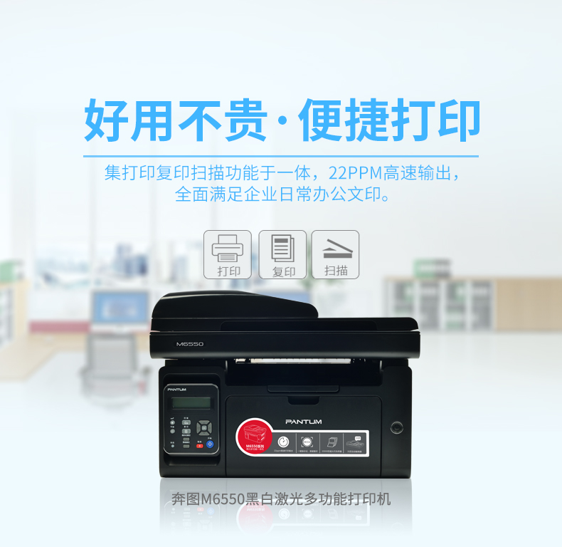 • 商品名稱:奔圖(Pantum)M6550 A4黑白激光多功能一體機(打印/復印/掃描)