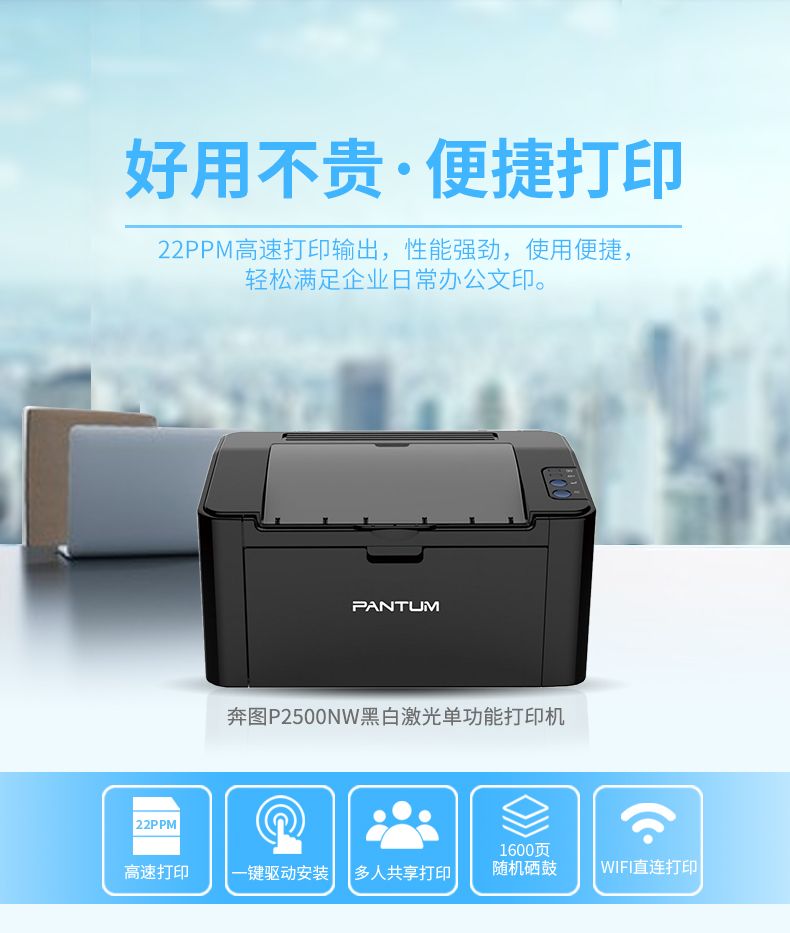 奔圖(Pantum)P2500NW A4黑白激光打印機