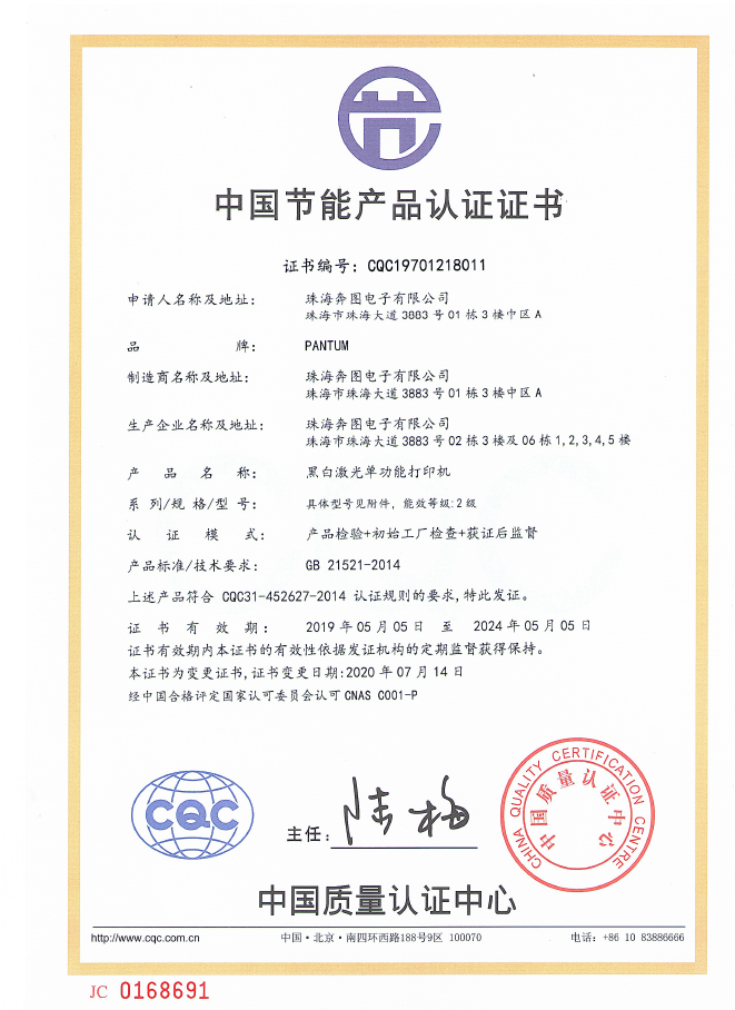 • 節(jié)能產(chǎn)品證書編號:CQC19701218011