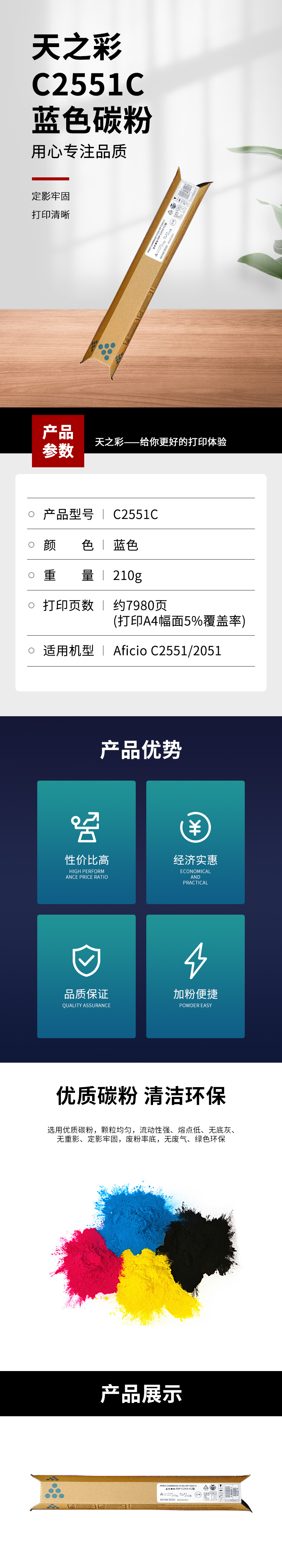 • 商品名稱:天之彩(Skyras)C2551C 藍(lán)色墨粉 適用于Aficio C2551/2051