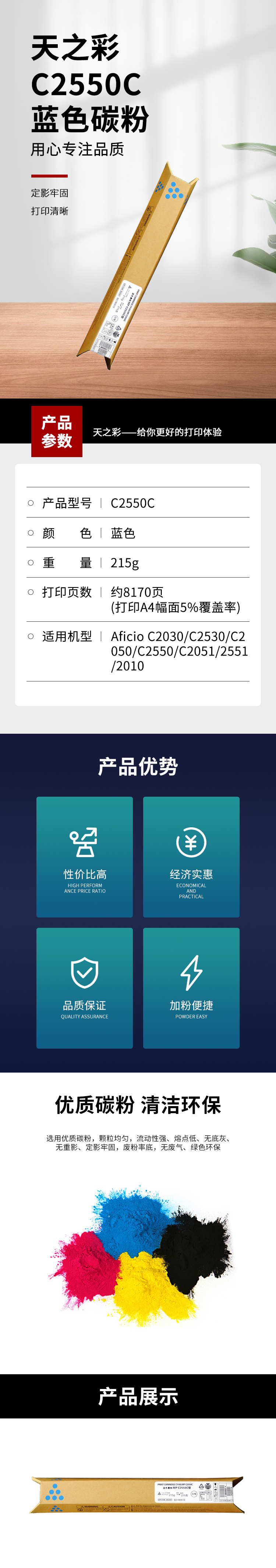 - 商品名稱:天之彩(Skyras)C2550C 藍色墨粉 適用于Aficio C2030/C2530/C2050/C2550/C2051/2551/2010