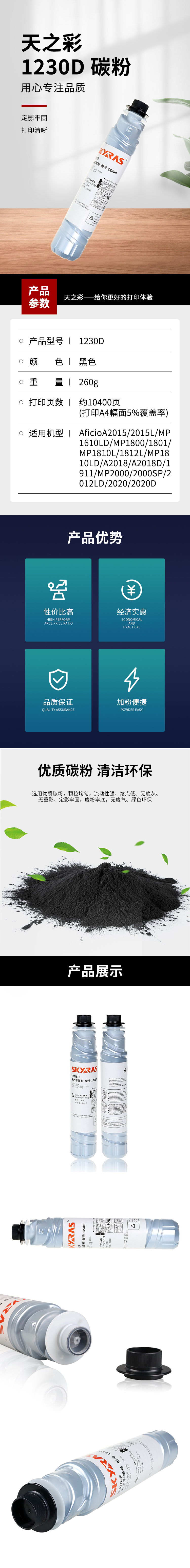 • 商品名稱:天之彩(Skyras)1230D 黑色碳粉 印量約10400頁