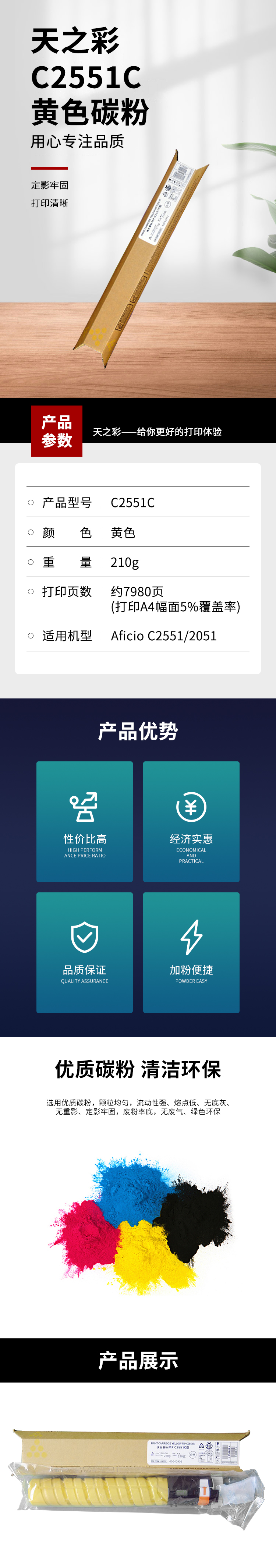 • 商品名稱:天之彩(Skyras)C2551C 黃色墨粉 印量約7980頁