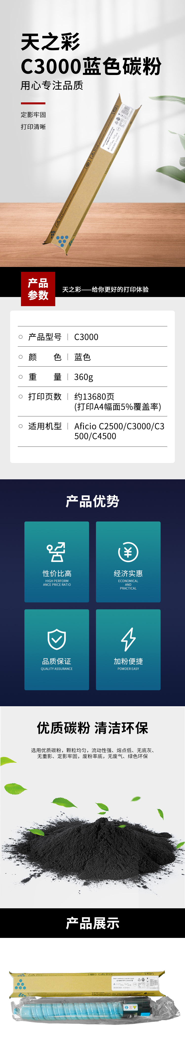 • 商品名稱:天之彩(Skyras)C3000 藍色墨粉 印量約13680頁