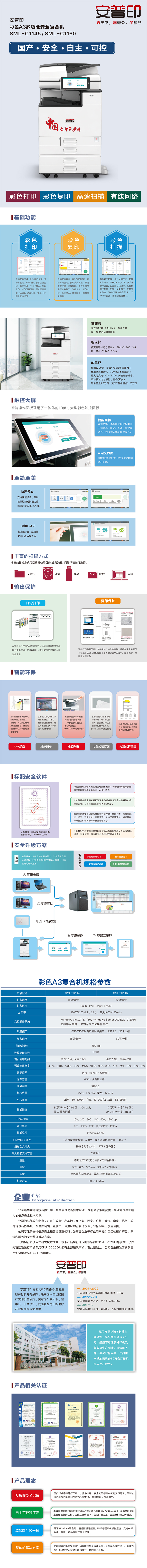 - 商品名稱:安普印(SecuPrint)SML-C1145 A3彩色多功能一體機(jī) 主機(jī)+輸稿器+雙紙盒