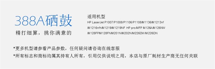 • 適用機(jī)型:適用HP Laserjet P1007/P1008/1106/1108/M126a/M126nw/ M128fn / M128fp/M128fw/M226dn/M226dw/M202n/M202dw/M1219nf/M1216nfh/M1213nf/M1136/M1218nfs//M1139
