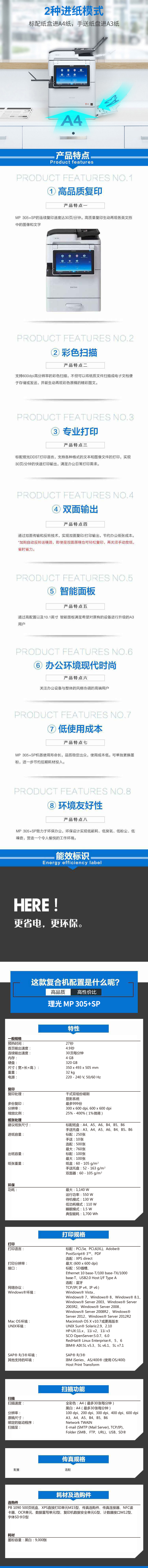 - 商品名稱:理光(Ricoh)MP 305+SP A3黑白數(shù)碼復(fù)合機(jī) 含輸稿器