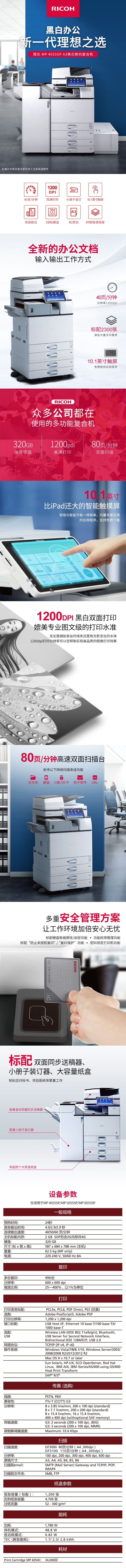 • 商品名稱:理光(Ricoh) MP 4055SP A3黑白數(shù)碼復(fù)合機(jī)(主機(jī)+雙面輸稿器+四層紙盒+搭橋單元+小冊(cè)子裝訂)