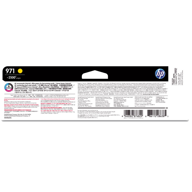 • 商品名稱:惠普(HP)Officejet 971/CN624AA 黃色墨盒