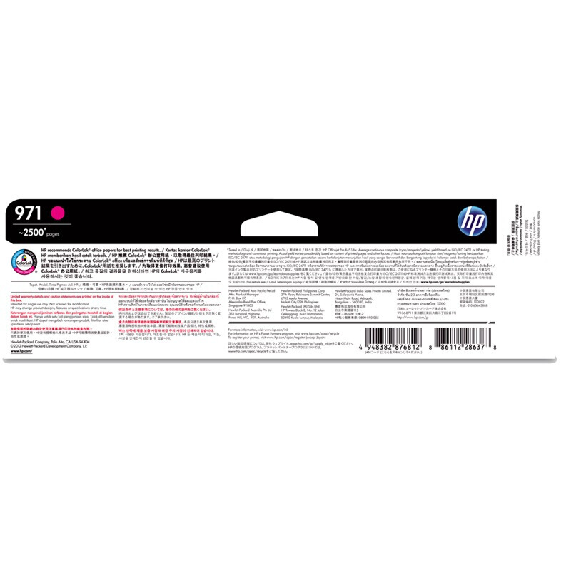 • 商品名稱:惠普(HP)Officejet 971 洋紅色墨盒