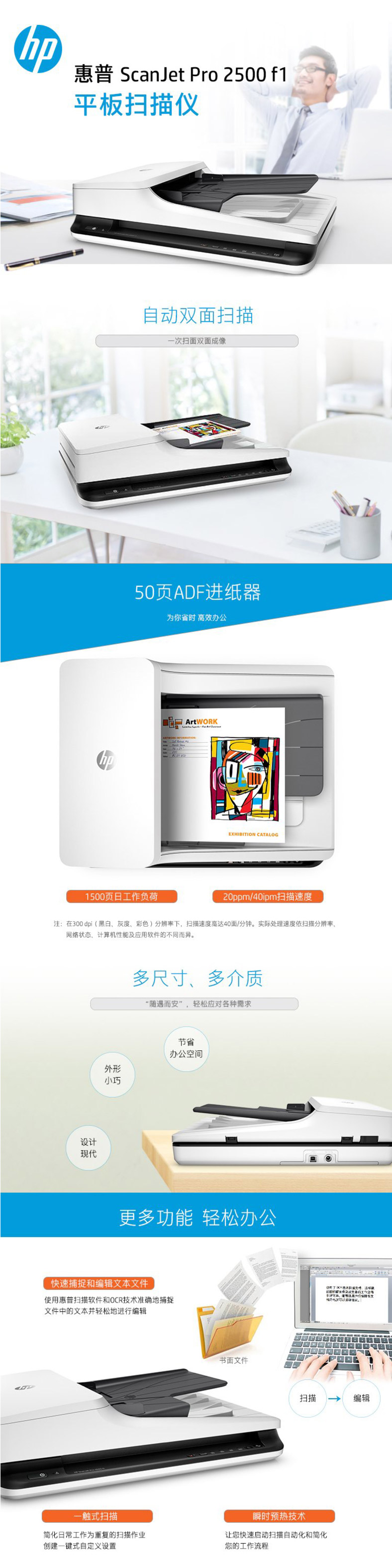 • 商品名稱:惠普(HP)ScanJet Pro 2500 f1 A4幅面掃描儀