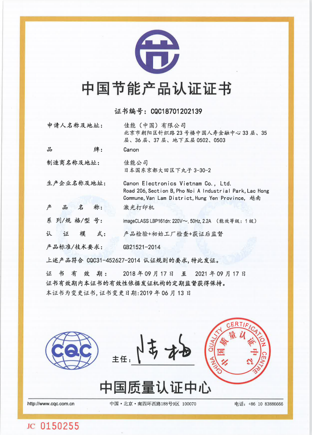 • 節(jié)能產(chǎn)品證書編號:CQC18701202139
