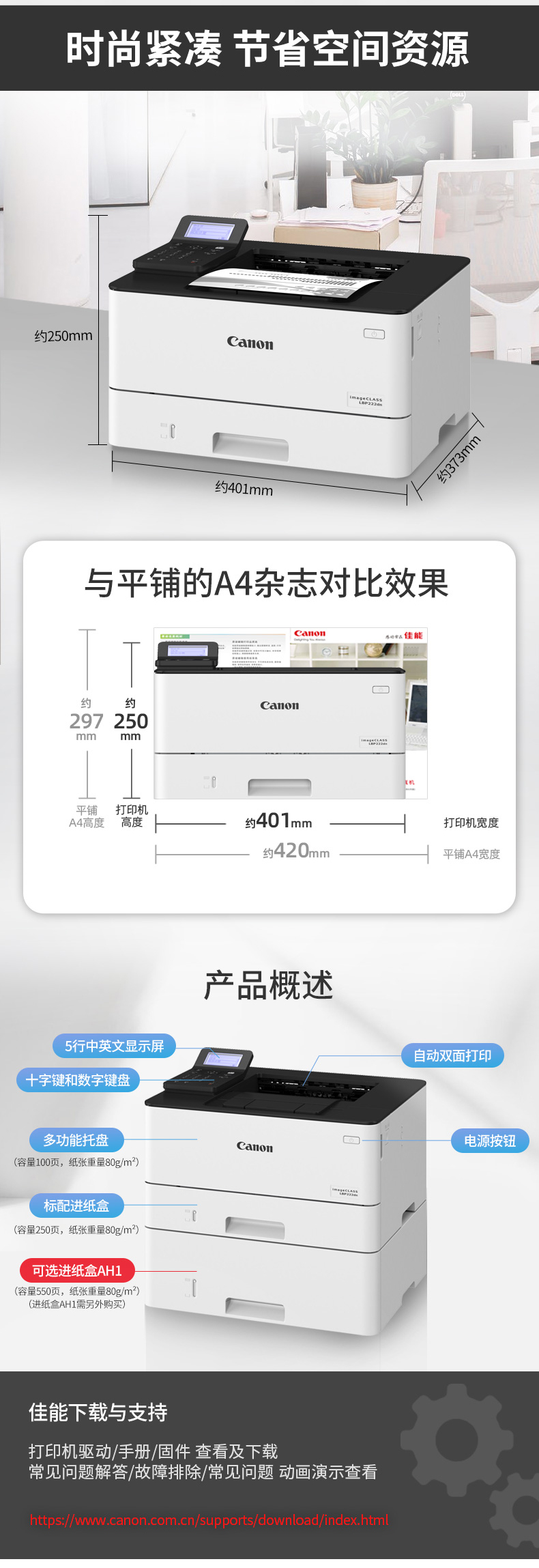 • 商品名稱:佳能(Canon) imageCLASS LBP222dn A4幅面黑白激光打印機(jī)