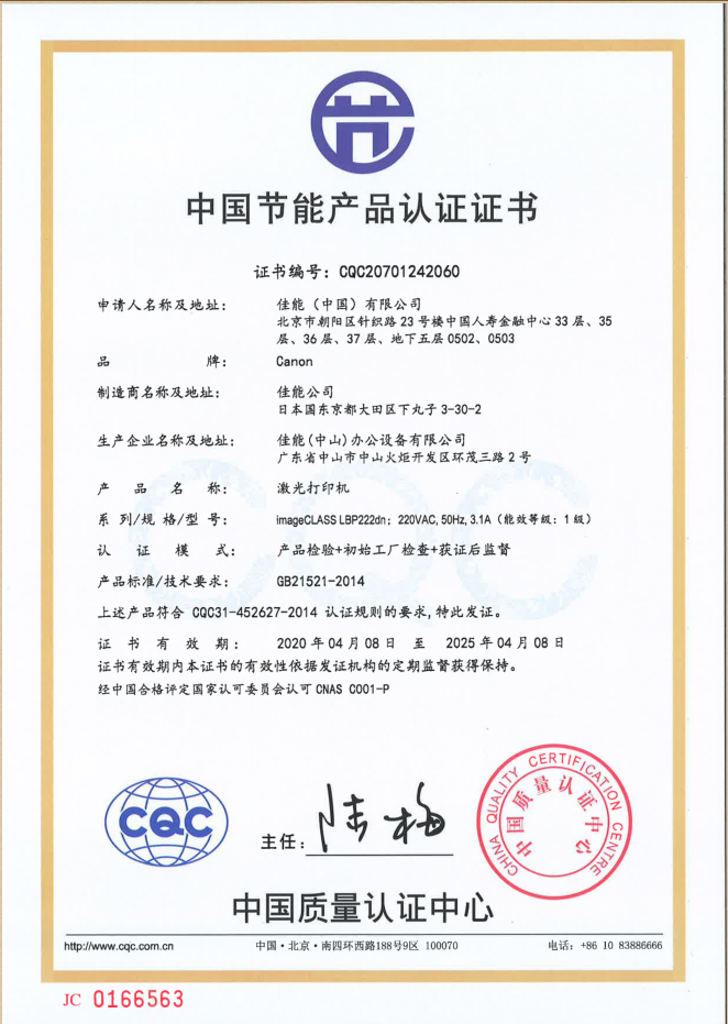 • 節(jié)能產(chǎn)品證書編號(hào):CQC20701242060