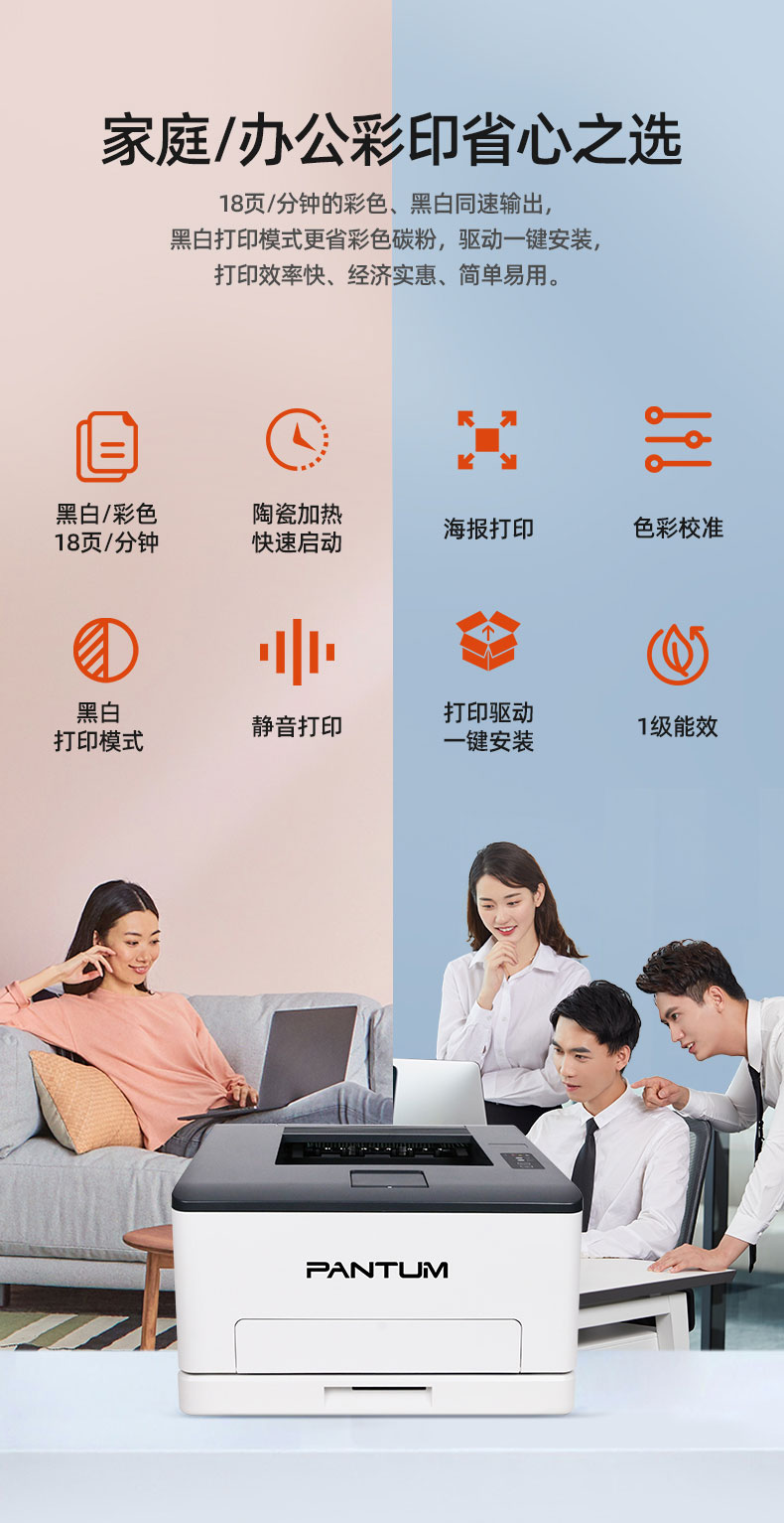 奔圖(PANTUM) CP1100彩色激光打印機(jī)(18頁每分鐘/USB打印)