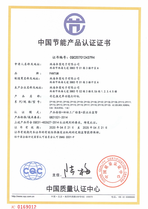 • 節(jié)能產(chǎn)品證書編號:CQC20701243794