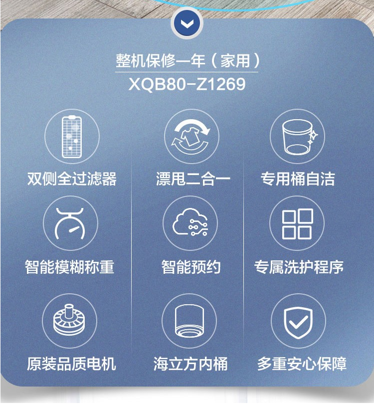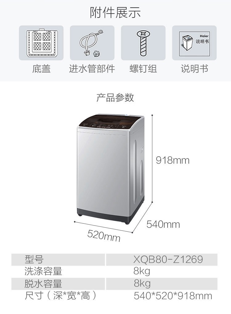 • 商品名稱:海爾 XQB80-Z1269 洗衣機(jī) 全自動(dòng)波輪 8kg公斤