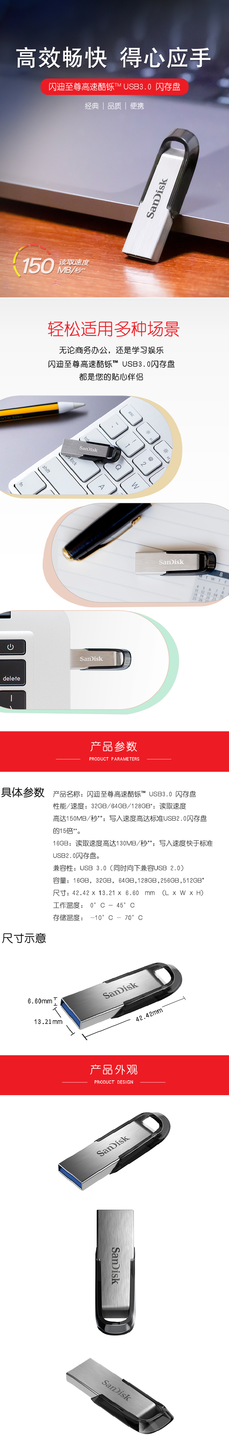 • 商品名稱:閃迪(SanDisk)64GB USB3.0 U盤 CZ73酷鑠 銀色 讀速150MB/s 金屬外殼 內(nèi)含安全加密軟件