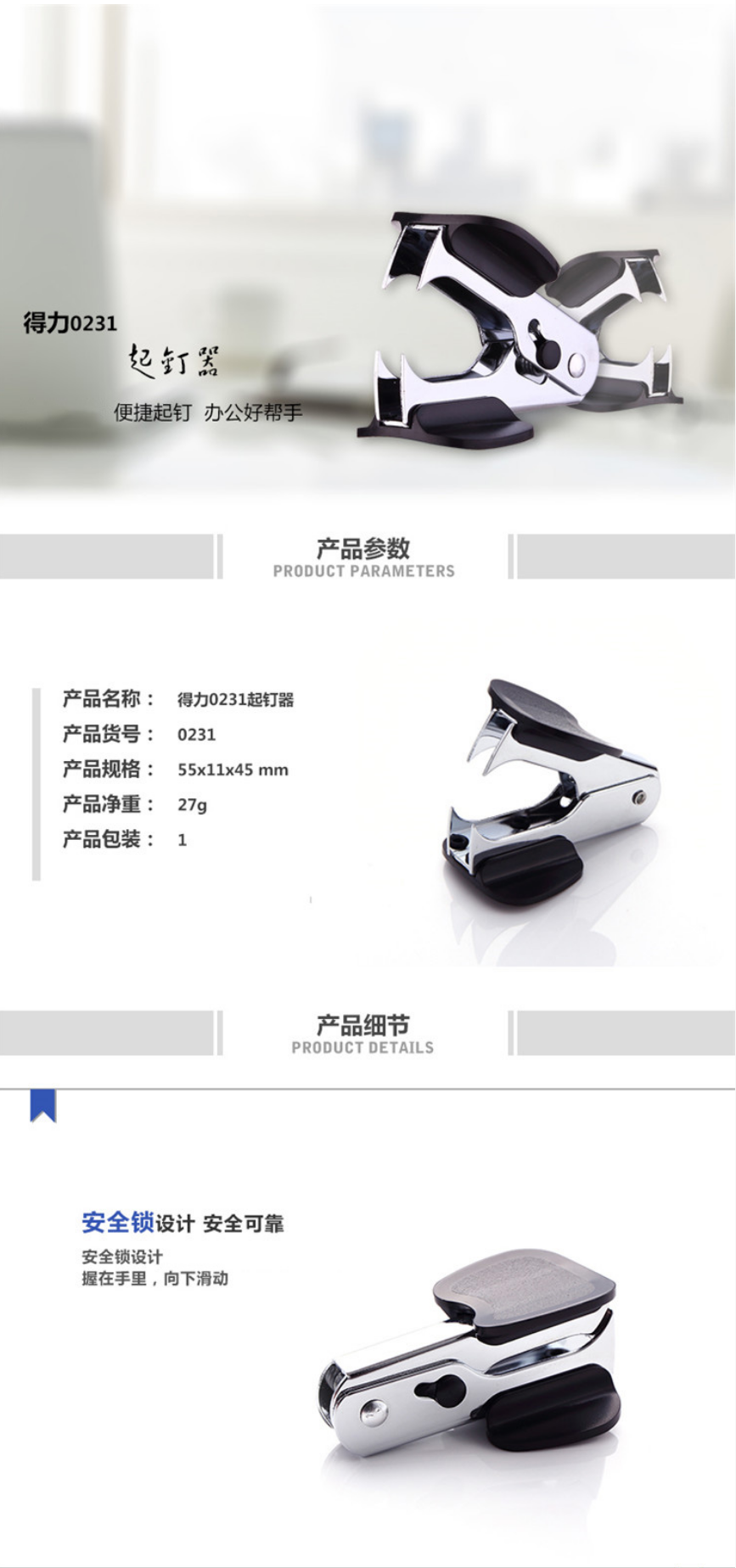 • 商品名稱:得力(deli) 0231便捷起釘器 輕松辦公 顏色隨機 得力/Deli 0231