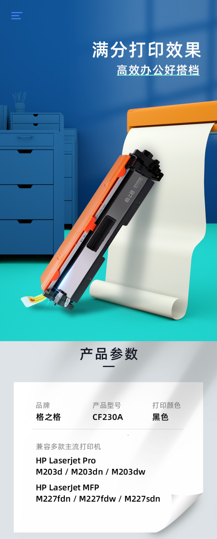 • 商品名稱:格之格 CF230A 黑色硒鼓帶芯片 印量約2500頁